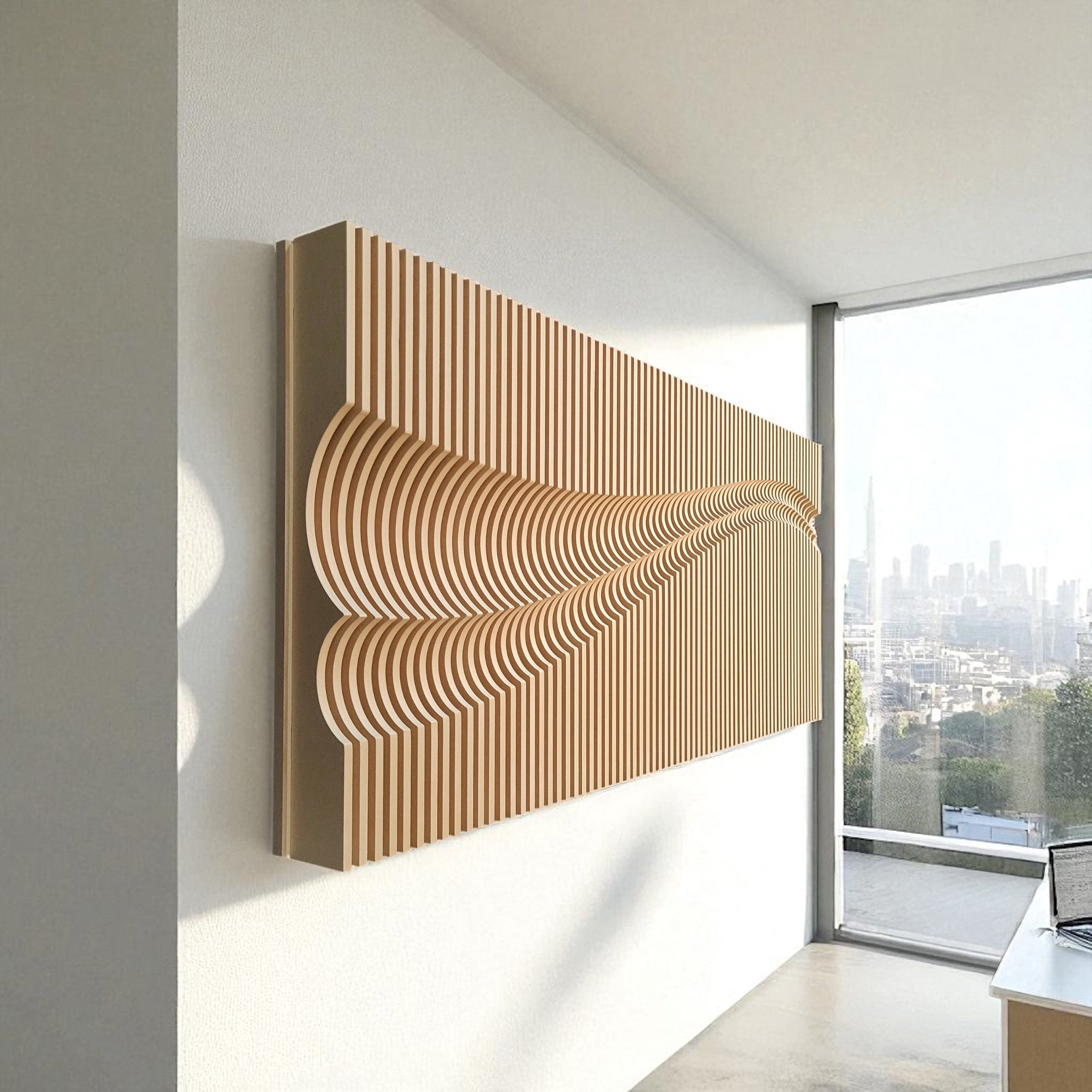 Sculptural wall panels crafted from plywood or PVC, customizable in size, finish, and design to transform any space.